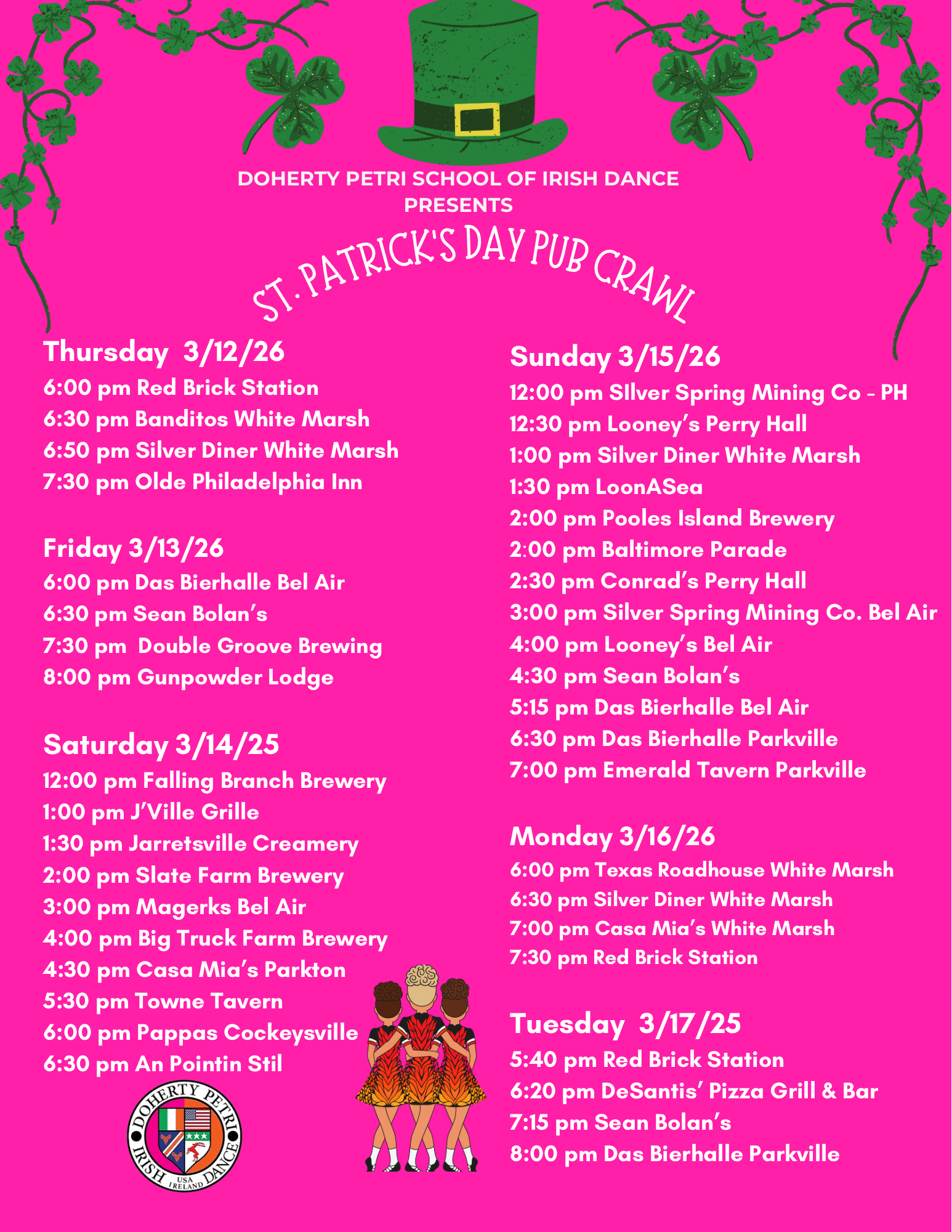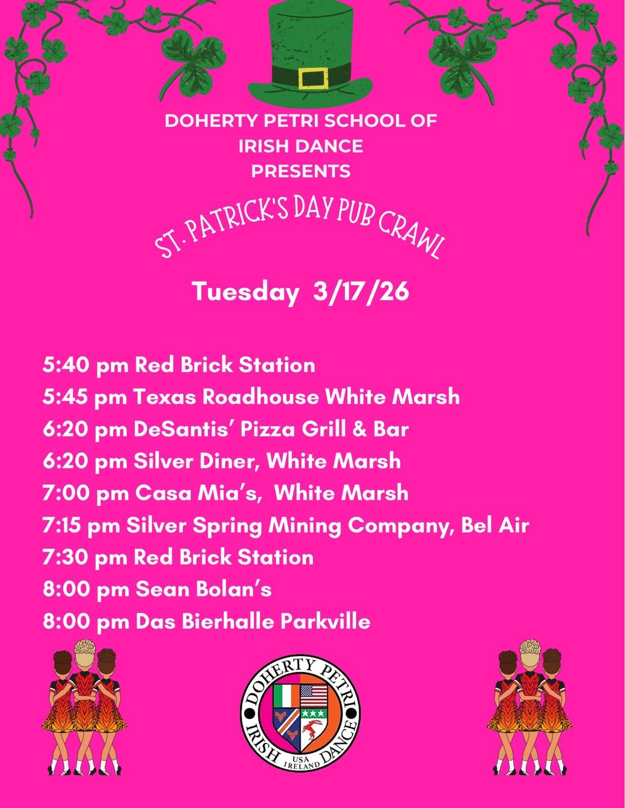Along with year-round classes, we participate in local performances, competitions, the Baltimore St Patrick's Day Parade, the Maryland Irish Festival, and other events throughout the region. Weekly classes are held at our studio in Parkville, MD.